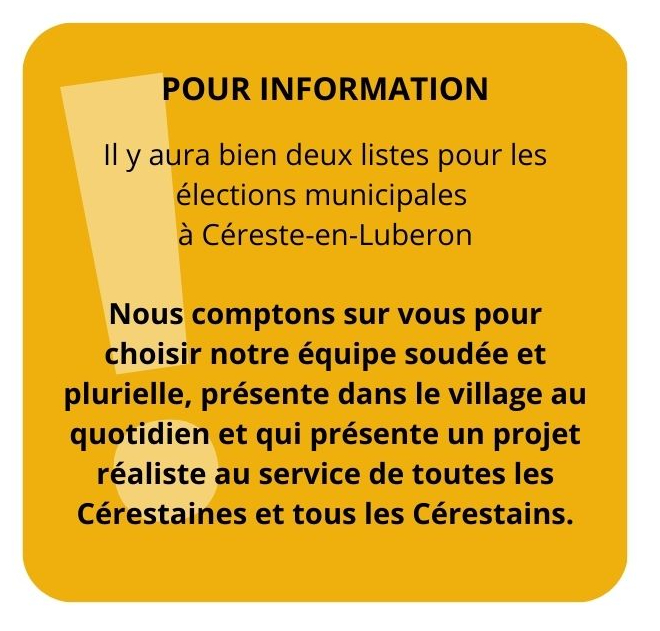 votez « Agissons pour Céreste-en-Luberon », liste sans étiquette proposée par Gérard Baumel.